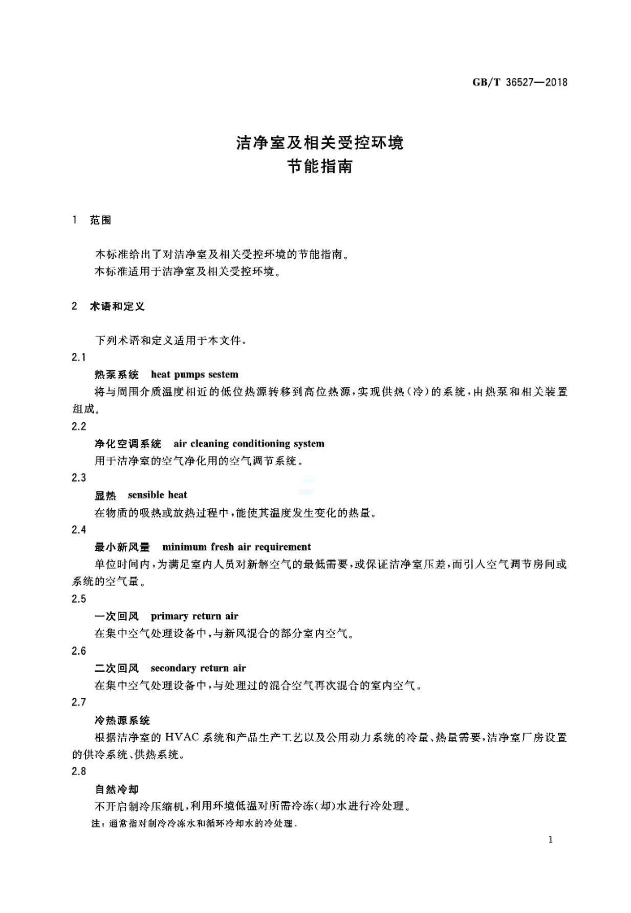 潔凈室及相關受控環境節能指南 GB/T36527-2018
